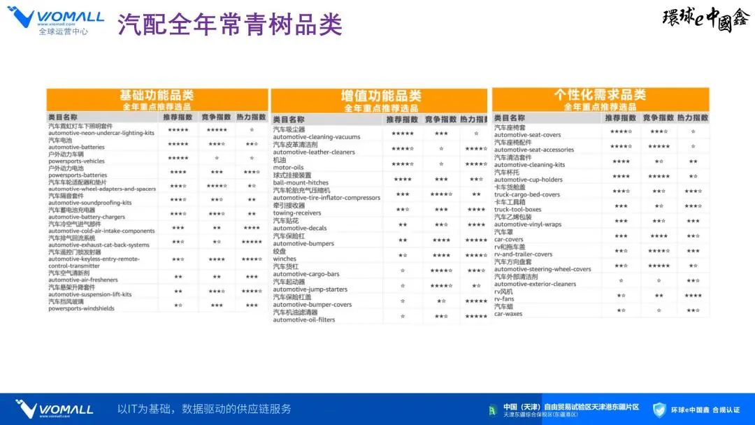 对ebay及Amazon上16万汽配卖家过去8年的交易分析,选取爆款汽配SKU 根据销售数据分析一键批量上传产品 汽车适配性数据设置--ACES服务(亚马逊汽配必备引流神器),营销推广等全方位的IT技术支持 根据订单分布智能分仓,近距离配送,大幅提升供应链效率、降低物流成本 总的来说,跨境电商为中国汽配行业提供了新的发展思路和机会,通过充分发掘不同国家市场的需求,提供差异化产品,并积极应对供应链和配送问题,中国汽配行业有望在跨境出海市场中取得更大的成功。 |